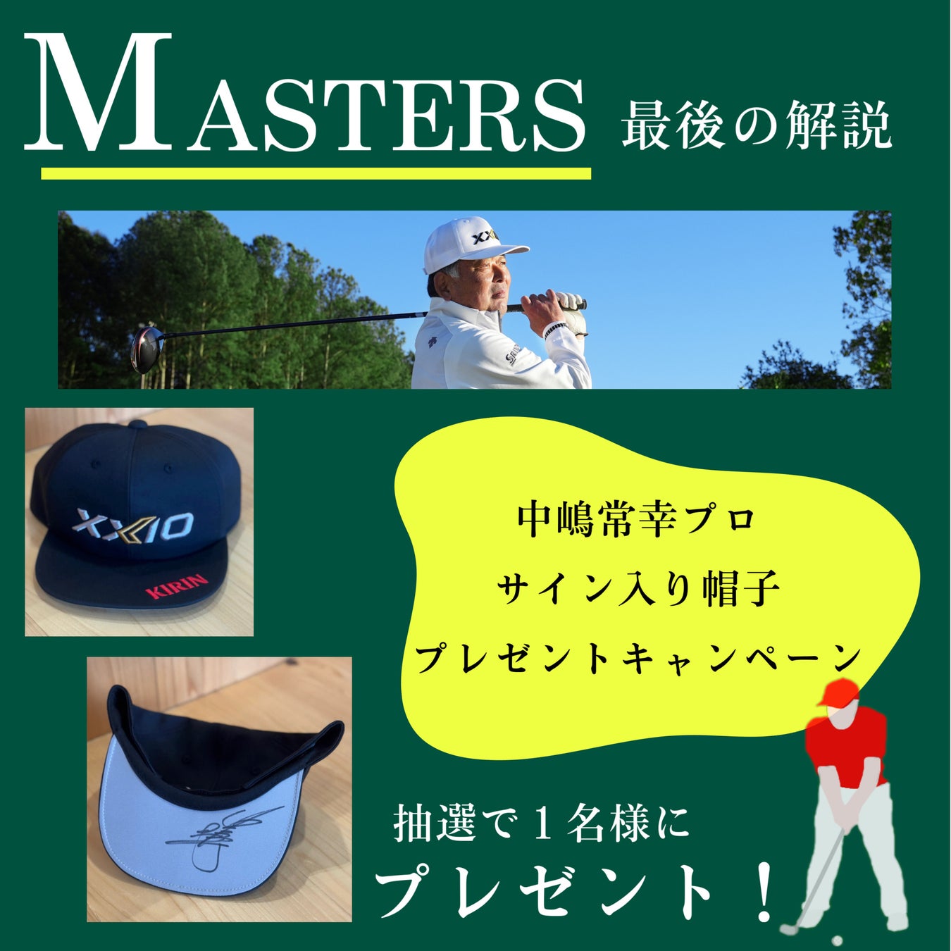 マスターズ開幕記念!!SNSアカウントから応募で中嶋常幸プロサイン入りキャップが当たる!!